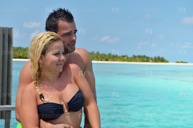 Счастливая молодая пара веселится и отдыхает на летних каникулах