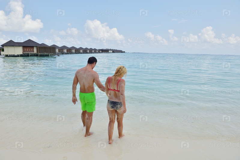 Счастливая молодая пара веселится и отдыхает на летних каникулах