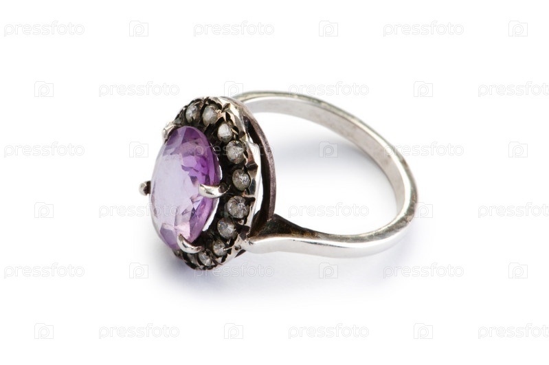 Серебряное кольцо на белом фоне