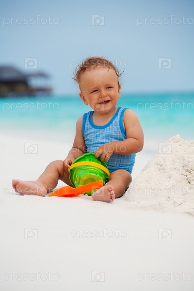 Малыш играет на песчаном пляже