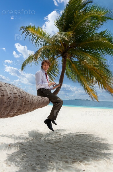 Бизнесмен, сидящий на пальме