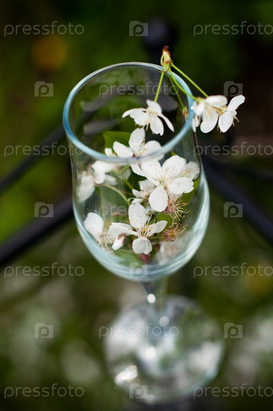 Бокал с цветами вишни