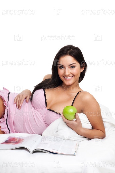 Счастливая женщина читает в постели