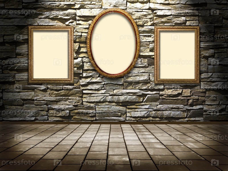 Иллюстрация, рамы на фоне каменной стены