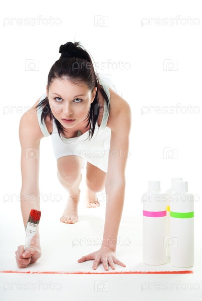 Женщина участвует в конкурсе по покраске