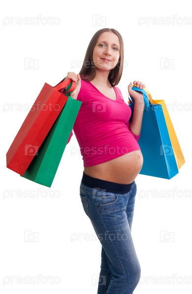 Беременная женщина с покупками