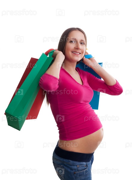Беременная женщина с покупками