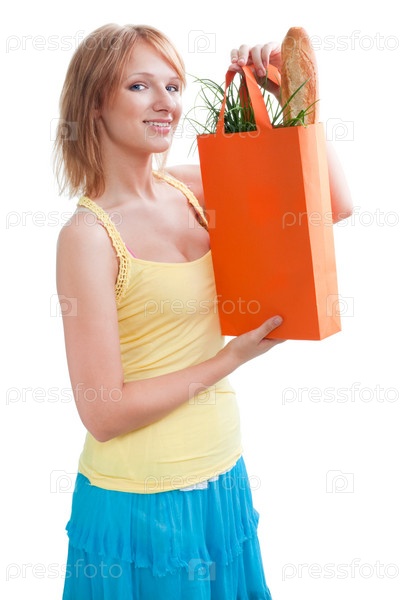 Счастливая женщина держит пакет