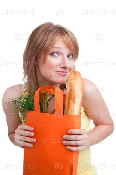 Удивленная женщина с багетом