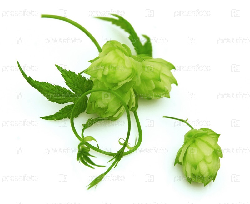 Цветущий хмель на белом фоне