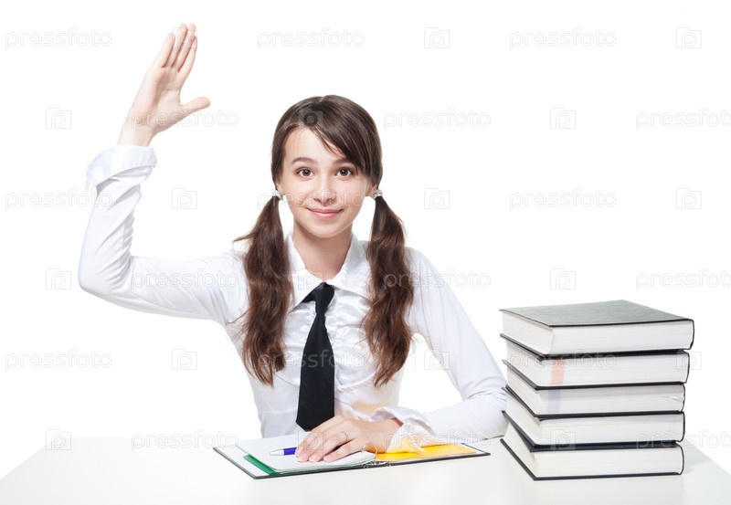 Девушка в школе протягивает руку
