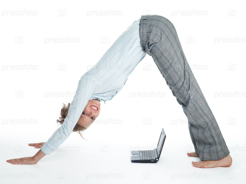 Гибкая бизнес-леди с ноутбуком