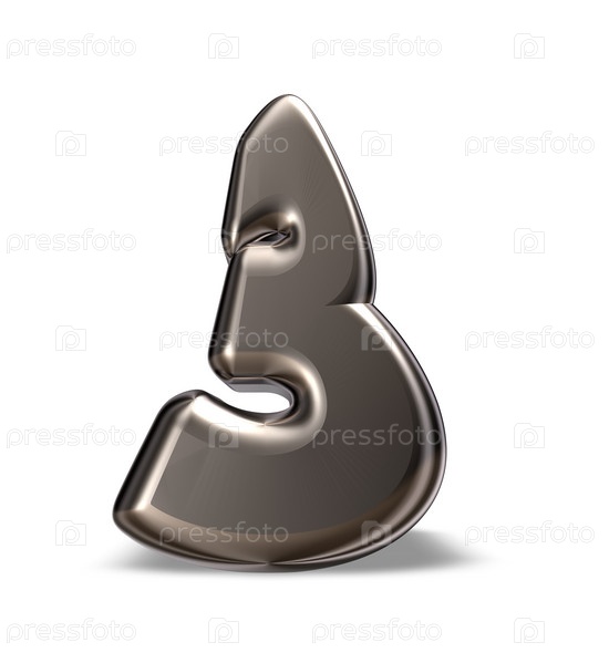 Металлическая цифра 3 на белом фоне. 3d иллюстрация