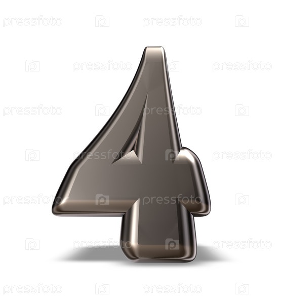 Металлическая цифра 4 на белом фоне. 3d иллюстрация