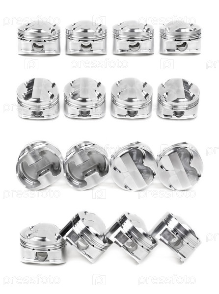 Коллаж полированных хромированных кованых поршней