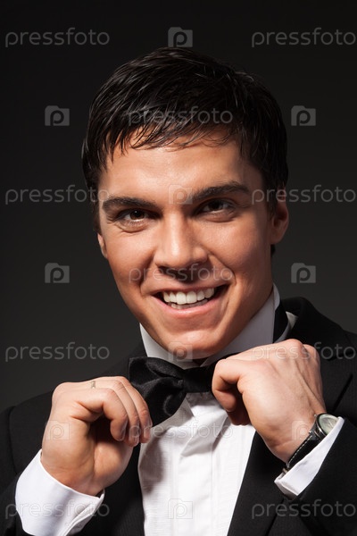 Позитивный человек поправляет бабочку