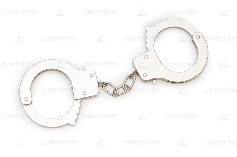 Металлические наручники на белом фоне