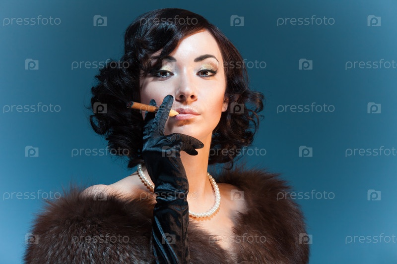 Портрет женщины с сигарой в стиле ретро
