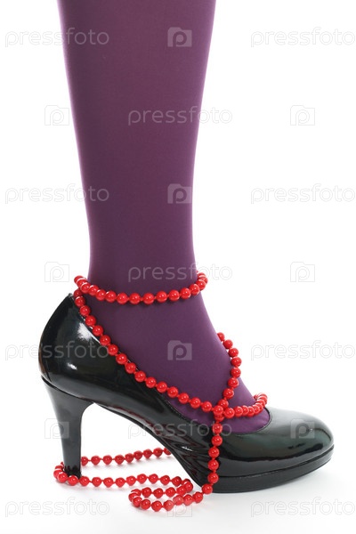 Красные бусы и лакированные туфли