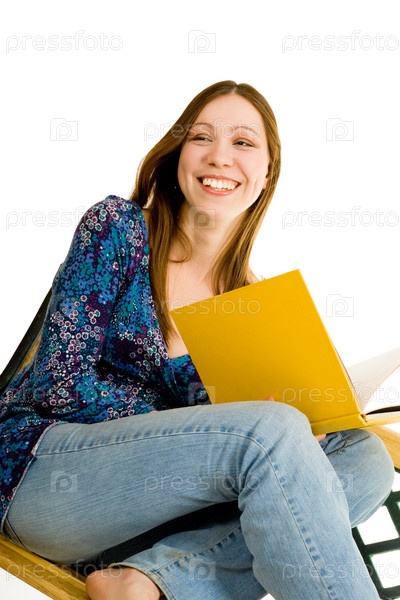 Женщина, сидящая с желтой книгой