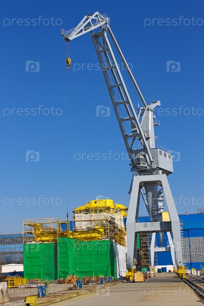 Краны и корабли, строящиеся на верфи
