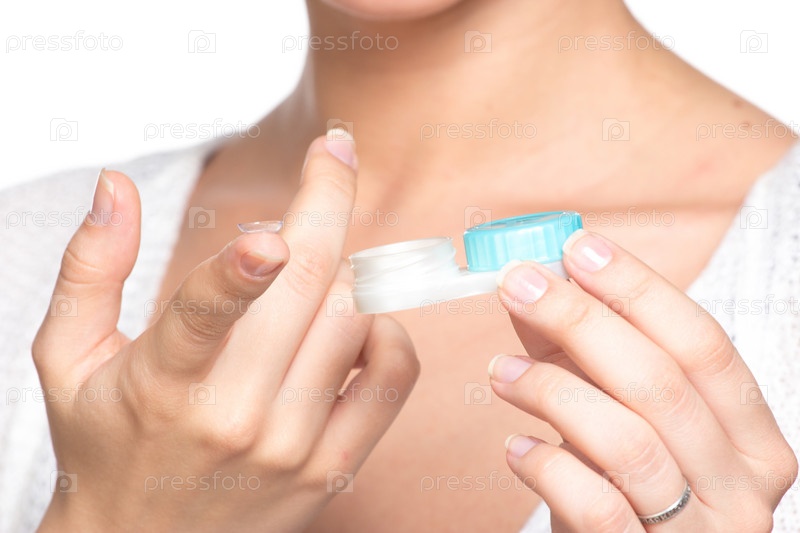 Контейнер с контактными линзами в женской руке