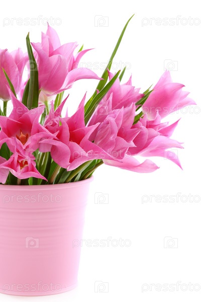 Красивые розовые тюльпаны в ведре