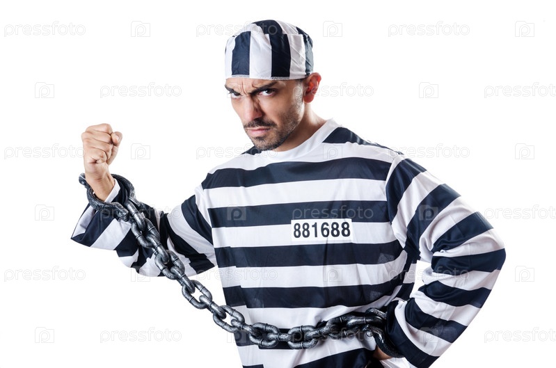 Осужденный преступник в полосатой форме