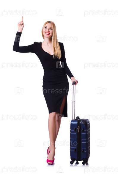 Молодая женщина готова к летним каникулам на белом фоне