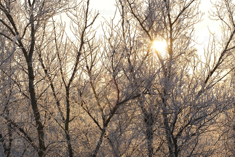 Деревья в снегу, закат