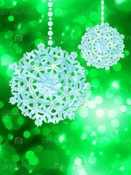 Зеленые снежинки на фоне с эффектом боке. EPS 8