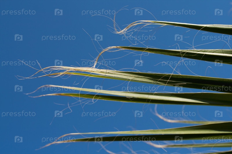Часть листьев пальмы на фоне неба