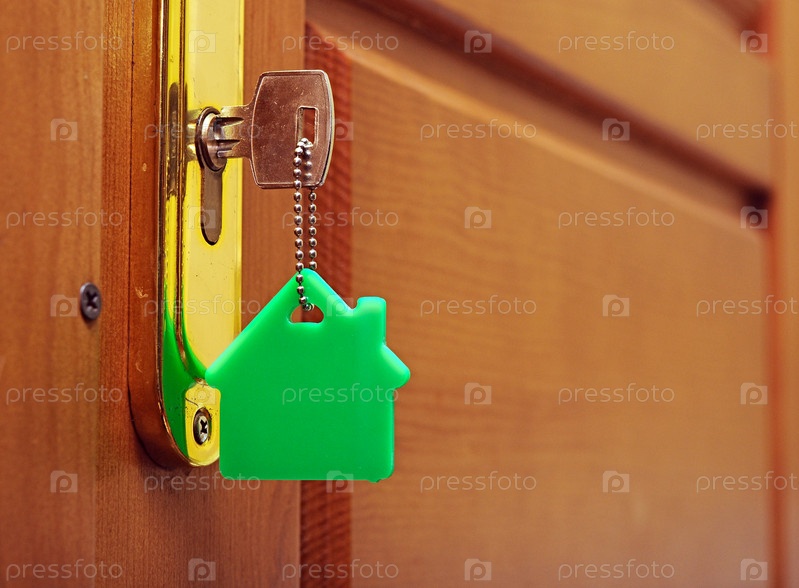 Ключ в замке со значком дома