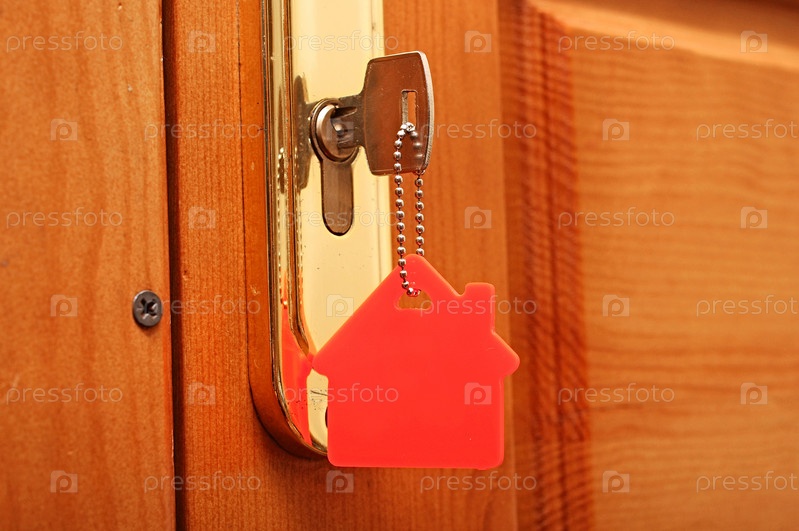 Ключ в замке со значком дома