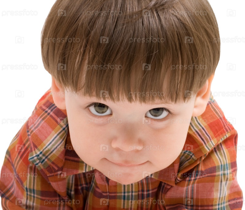 Лицо мальчика крупным планом на белом фоне