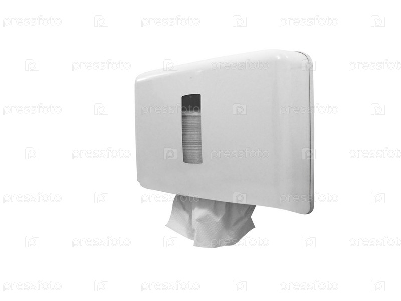 Контейнер с бумажными полотенцами, белый фон