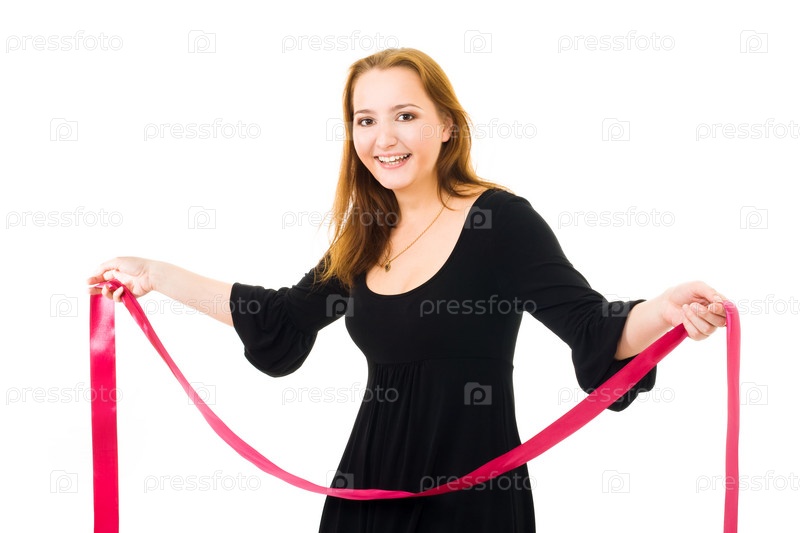 Молодая женщина с красной лентой