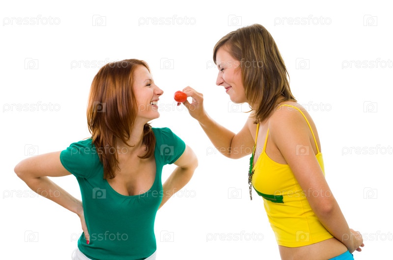 Две подруги едят клубнику