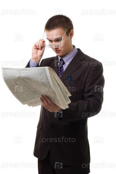 Молодой человек в очках с газетой