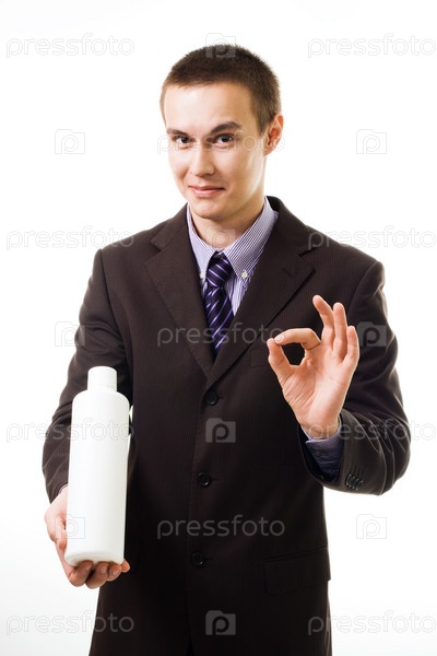 Молодой человек рекламирует продукт