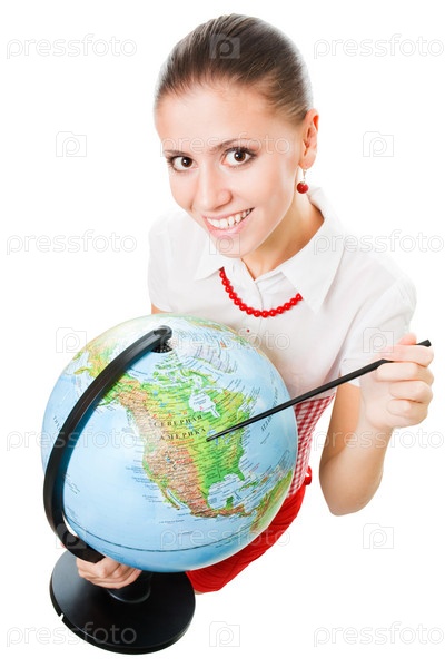 Молодая женщина с глобусом