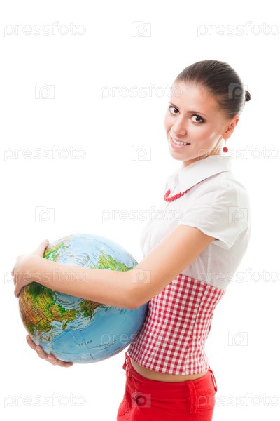 Молодая женщина с глобусом