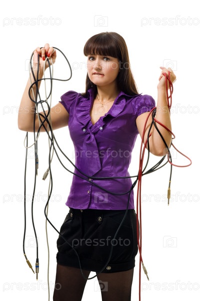 Девушка, запутавшаяся в проводах