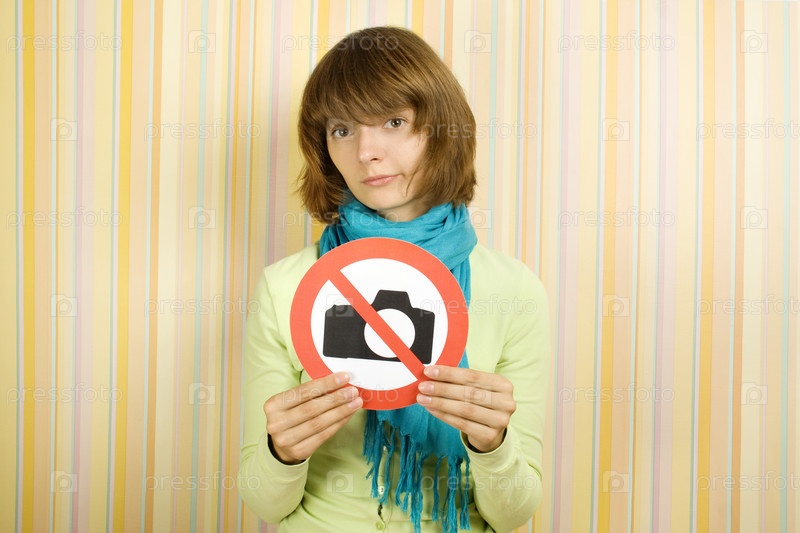 Девушка со знаком запрета на фотографию