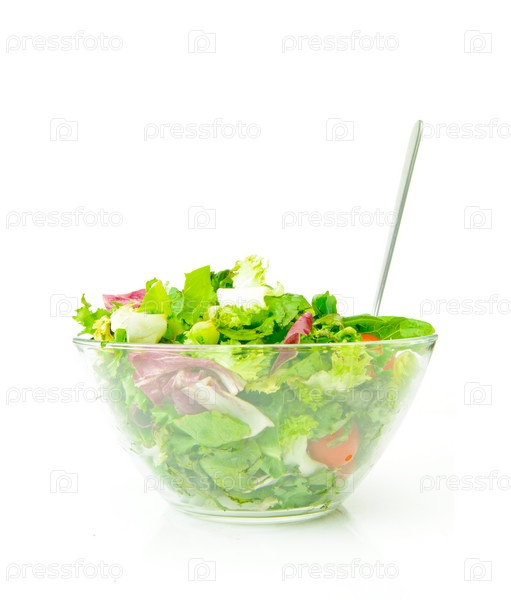 Миска с салатом на белом фоне