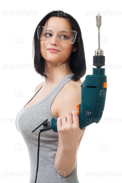 Женщина, работающая с дрелью