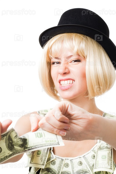 Девушка, разрывающая доллар
