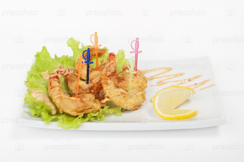 Креветки в кляре с зеленью