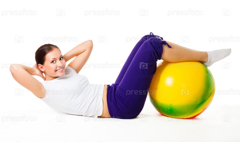 Женщина выполняет упражнение с мячом