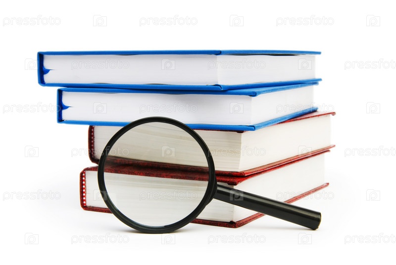 Увеличительное стекло со стопкой книг